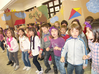 No final, apresentamos uma canção que preparamos com a ajuda da nossa professora de Música - profª Anabela - que criou uma canção subordinada à história.